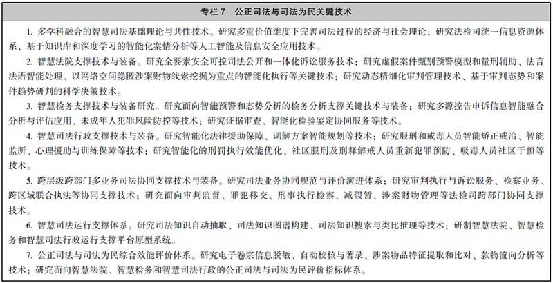 6.发展公正司法与司法为民关键技术。